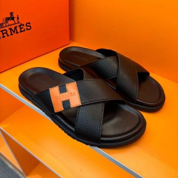 Hermes Paris Premium Black Slides